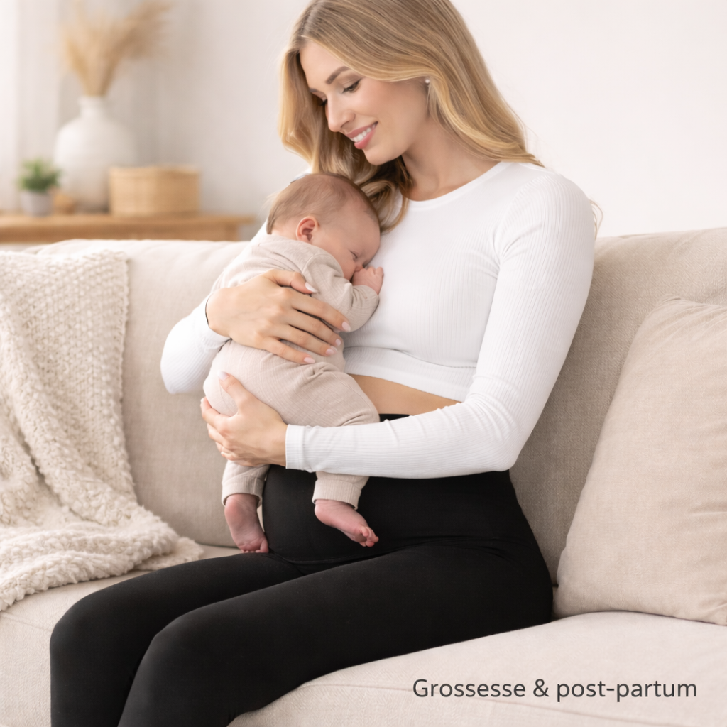 Il est pensé pour accompagner le corps pendant la grossesse, mais aussi durant la période de post-partum, lorsque le corps change encore.
